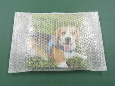 大きいサイズの場合は、ミラマットで包んだ後、段ボールで梱包し、さらにエアパッキンで包みます。